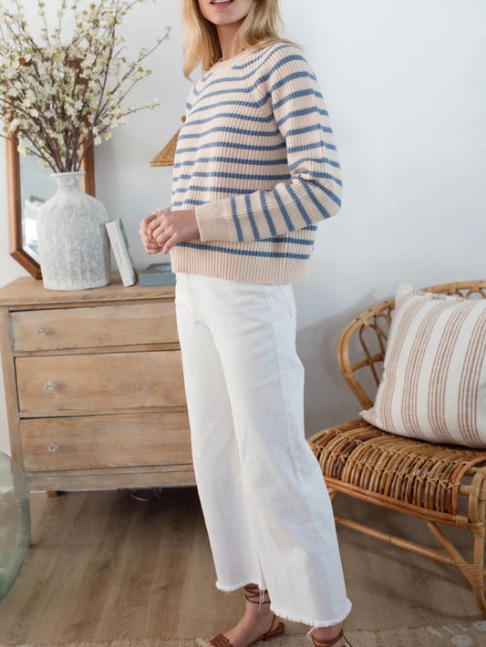 Marea Sweater - Ivory/Atlantic Blue Stripe